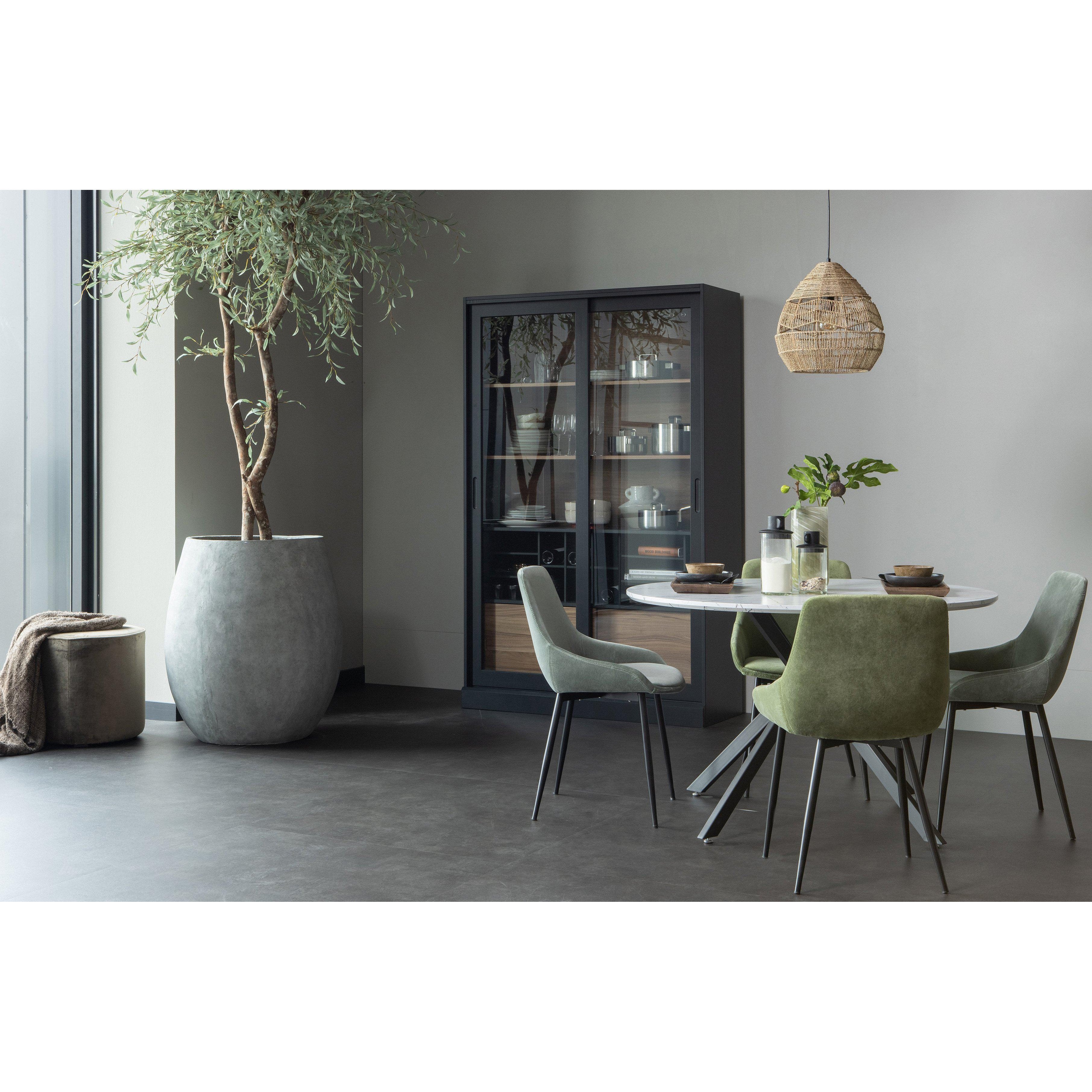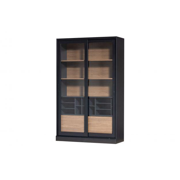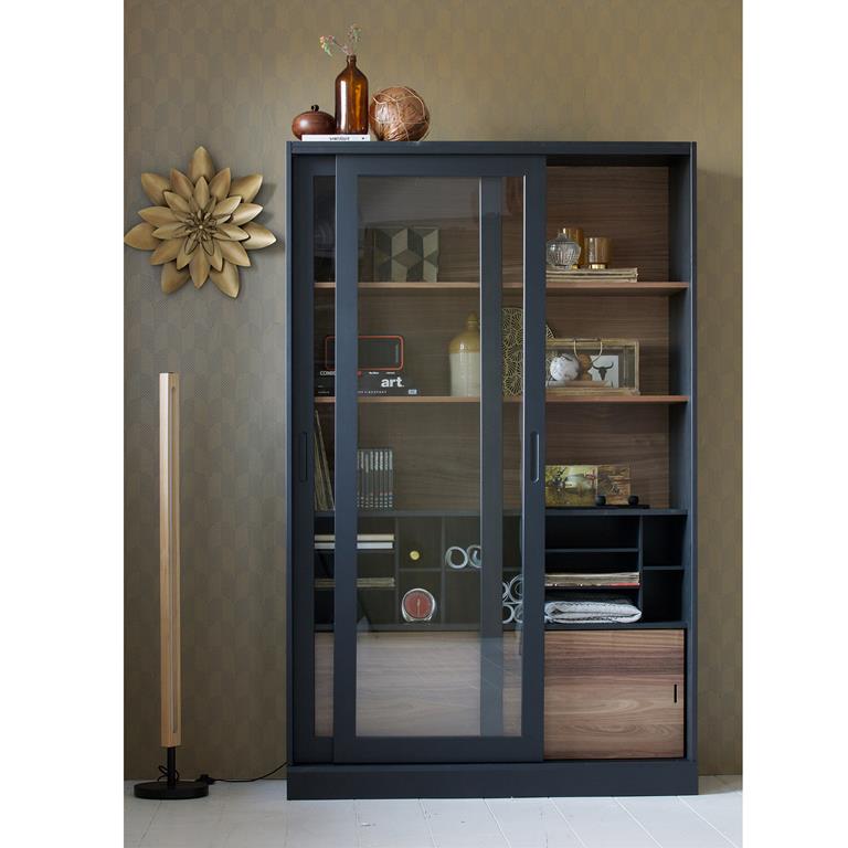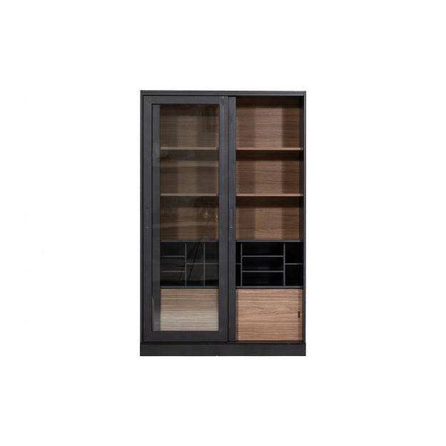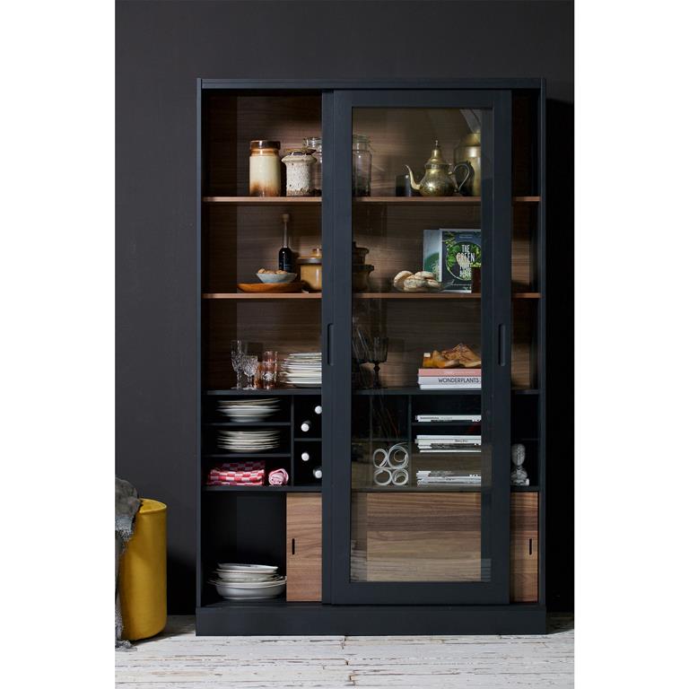 De james vitrine (hxbxd) 200x125x47 cm is een eigen productie van het nederlandse merk woood exclusive. De vitrine james heeft een prachtige landelijke stijl met een stoere uitstraling en is gemaakt van fsc-hout. De matzwarte delen zijn gemaakt van grenen en de houtkleurige delen zijn gemaakt van spaanplaat met notenprint. De james vitrine is in een zwarte kleur geschilderd. Het interieur van de kast heeft de natuurlijke kleur van het hout. De ruimte tussen de planken is 33,3 cm. In deze kast kunt u veel opbergen door de 3 planken en de kleinere zwarte planken. Laat uw favoriete servies of glaswerk zien en stijl het met prachtige accessoires. Het glas in de deuren heeft een dikte van 4 mm. Deze kast wordt geleverd als een bouwpakket met een duidelijke montagehandleiding.