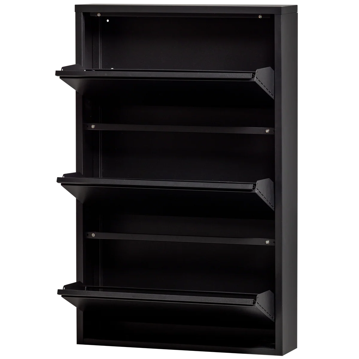 WOOOD schoenenkast SABINE in strak zwart metaal geeft je hal meteen een opgeruimde en stijlvolle uitstraling. Met drie ruime vakken berg je al je schoenen overzichtelijk op, zodat je entree rust uitstraalt en je altijd snel vindt wat je nodig hebt. Je creëert een praktische én sfeervolle plek waar je elke dag met plezier binnenstapt.